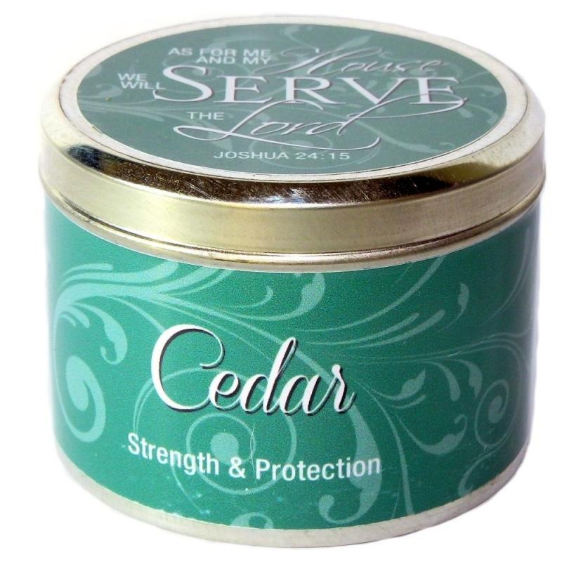 Geurkaars: Cedars of Lebanon Geurkaars ( in blik )(7x5 cm) - "Wat mij en mijn huis betreft..."
